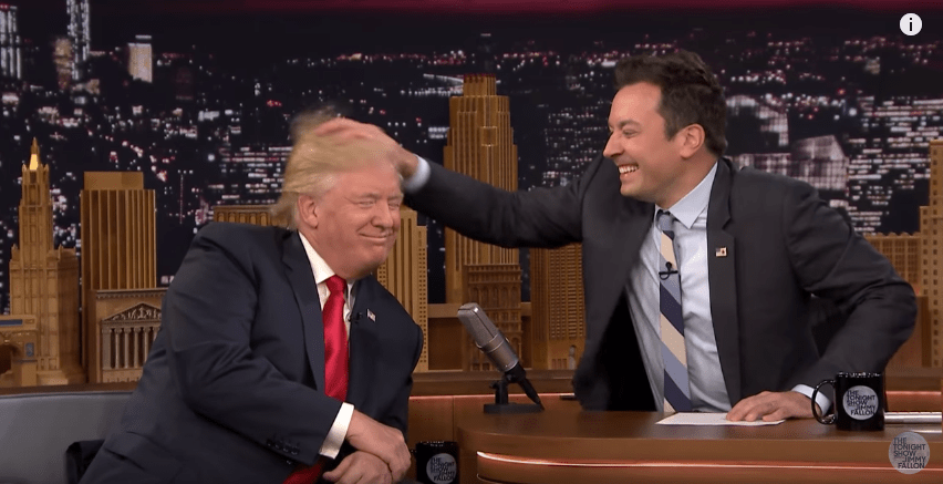 ในรายการ The Tonight Show ไม่นานมานี้ Jimmy Fallon พิธีกรใจกล้าเชิญ Donald Trump ผู้ท้าชิงตำแหน่งปธน.สหรัฐฯ ที่คุณก็รู้ว่าคนรักมากและเกลียดมากกกมาร่วมพูดคุย โดยช่วงหนึ่งของรายการ Jimmy แซว Trump ว่า