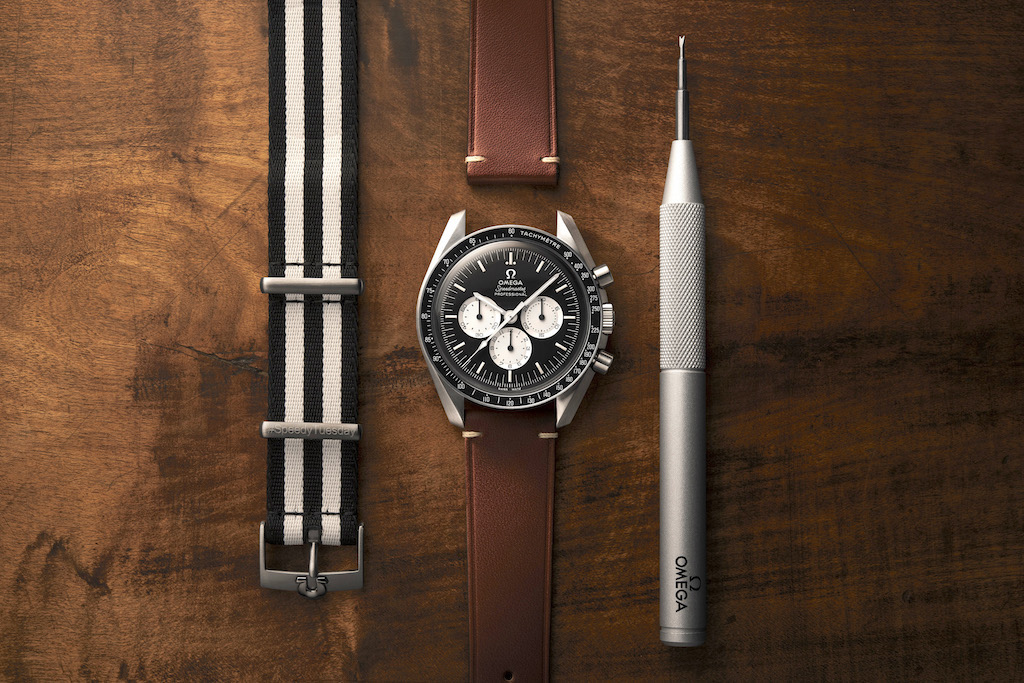 เรือนเวลาจะถูกบรรจุมาในกระเป๋าม้วนทำจากหนังพร้อมกับสายนาโต้ ทั้งบนลูปสายและเครื่องมือถอดสายนาฬิกาเองจะสลักว่า #SpeedyTuesday เช่นเดียวกัน
